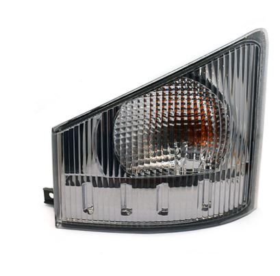 Feu clignotant, angle gauche (côté conducteur) de la façade avant de la cabine du camion.