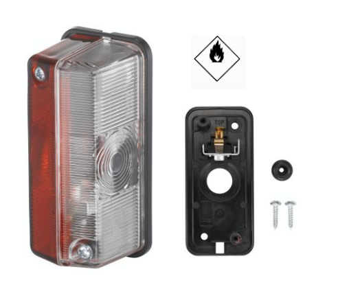 Feu d'enconbrement 24 V est adapté pour montage supérieur en saillie latéral arrière (gauche/droite). Le voyant est limpide rouge/blanc.