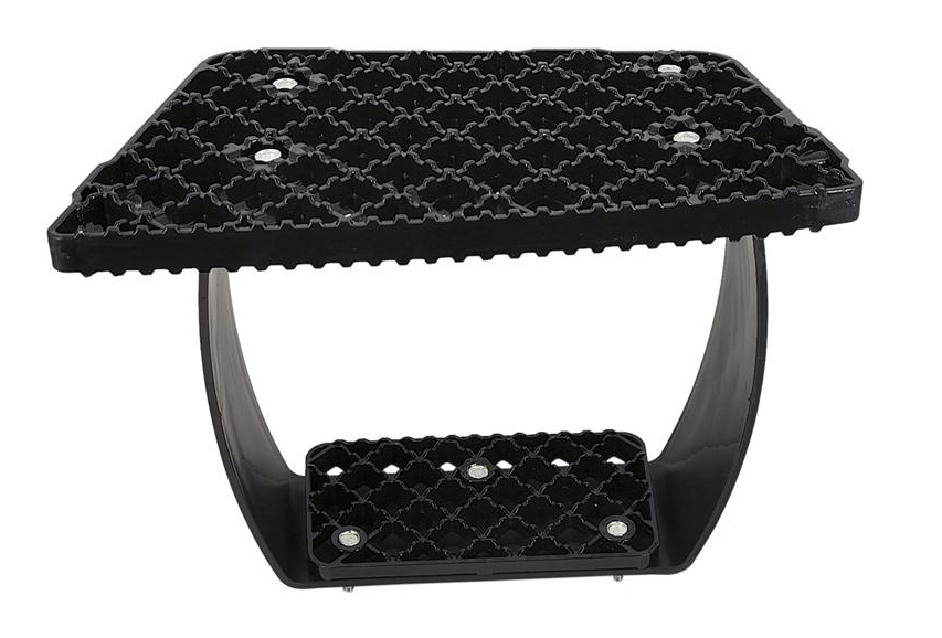 La marche suspendue se situe sur la face latérale droite (côté passager), sous le marchepied droit.