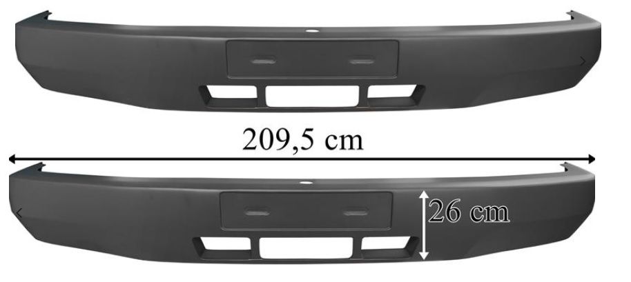 Le pare-chocs se fixe à l'avant du véhicule, sous le capot. Il est en stratifié noir.