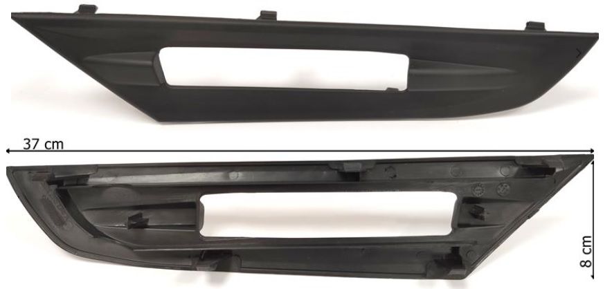 L'enjoliveur de pare-chocs se fixe à l'avant de la cabine du camion à l'angle gauche (conducteur), et dispose d'un trou pour les feux de jour. Il est en plastique noir.